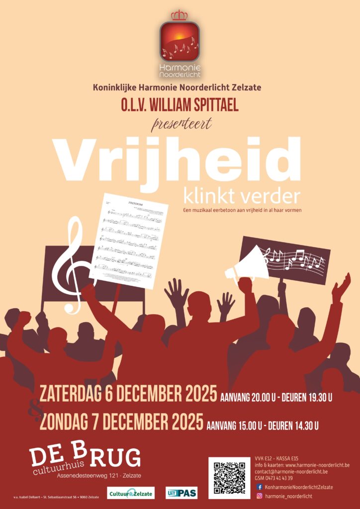 Harmonie Noorderlicht Zelzate neemt je mee op een muzikale reis vol harmoniewerken, pop- en filmmuziek.